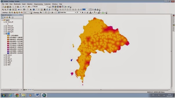 จากนั้นเปิดข้อมูล Chon_villจากนั้นเปิดเครื่องมือ Euclidean Distance